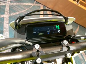 新たに搭載されたモダンなインターフェースを提供する新型4.2インチフルカラーTFTディスプレイは、全体的なレイアウトはスリムでミニマルなデザインを踏襲していますが、エンジン回転やギア選択表示は一目で分かりやすくなりました。
